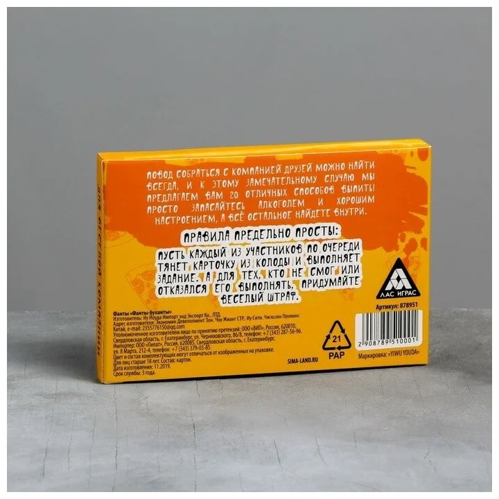 Купить игра для компании "фанты буханты" 20 карт от 100 руб. с доставкой до пункта выдачи в Обояни. Интернет магазин ДекаМаркет. Оплата при получении.